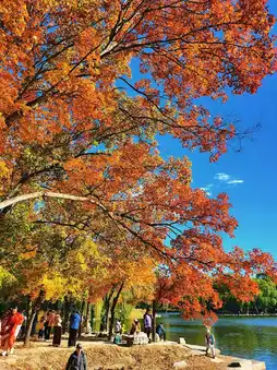 Here, you’ll find not only vast maple groves but also scenic lake views, mandarin ducks, and reeds, creating rich layers that far surpass the photo effects of the few Yuanbao Maples in Ditan Park. More importantly, compared to the ginkgo avenue in Yuanmingyuan and the overcrowded Ditan Park, the Lion Forest has fewer visitors, allowing you to comfortably shoot portraits without worrying about strangers in your frame.