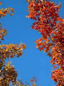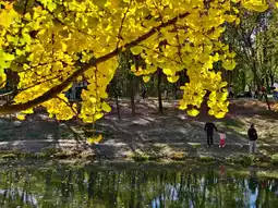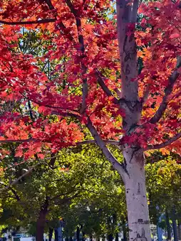 Bright yellow, vibrant red, shy pink, deep green, and clear blue... The colors of Olympic Forest Park appear especially intense under the warm late autumn sun.