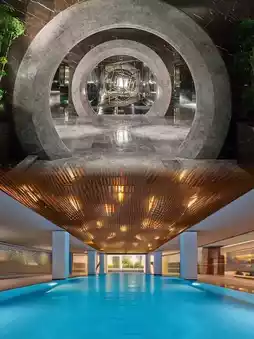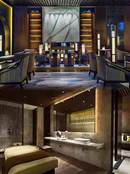 The indoor heated pool is best visited in the evening, with a starry sky ceiling and infinity design that feels like swimming in the galaxy; the gym equipment is all Technogym; the spa center uses Forbidden City red as the main color, and the Chinese massage techniques are very professional.