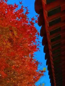 · Photo Tips: Shoot from a low angle looking up, using the red leaves as the foreground and the city wall and sky as the background for a striking composition.
