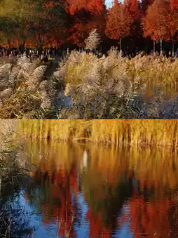 1. The most attractive feature of this Maple Leaf Avenue is its diverse and dynamic scenery. It is located on one side of a tributary of the Yudai River, where not only are there forests of red maples, but also swaying reeds and winding rivers complement the view. The world of red and yellow is like an autumn painting.