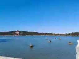 The bustling tourists on the bridge and the leisurely boats on the lake filled the still white stone bridge with a flowing vitality.