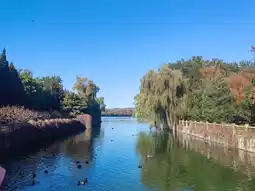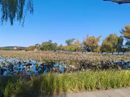 As soon as we entered, we saw black swans leisurely gliding on the lake. Their bright red beaks and jet-black feathers added a noble and lively touch to this autumnal scene.