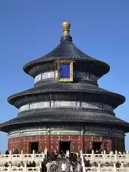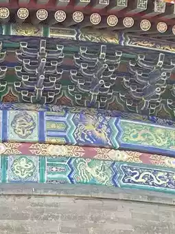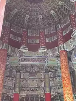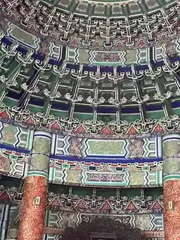 The Qi-nian Hall is a facility where emperors of the Ming and Qing dynasties held rituals for bountiful harvests. It is the largest altar in China, with a diameter of 32m and a height of 38m. The pillars and walls inside the building are truly beautiful. ใ