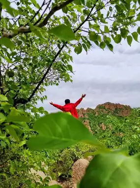 Later, when checking in at the next section of the path, I encountered a problem: my phone kept getting blocked by leaves when placed on the rocks. Then, clever me thought of a solution (don't overthink it; I just wedged it into the rocks below, and after taking the photo, it popped back up on its own after a while🙅)