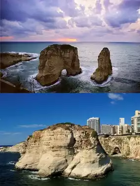 • Pigeon Rocks: Beirut’s iconic attraction, two rocks protruding from the Mediterranean Sea at the edge of the city. They are very famous and a great place for taking photos.