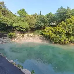 Beitou Thermal Valley, also known as the Hell Valley, is a small acidic green sulphur hot spring with water temperature up to 100 Degrees Celsius. The valley can be reached within a 15 minute walk from the Xinbeitou Station. There's a sulfuric smell in the air when you reach the valley, and steam can be constantly seen due to the high temperature. There is also a small hot spring pool just outside the Valley where you can soak your hands in the green sulfuric spring water.