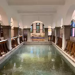 The museum's indoor highlights are the central hot spring bath on the underground floor and the large Japanese-style platform on the second floor. Well-preserved original design elements such as Romanesque arches and stained glass windows can be seen everywhere, creating a very relaxing atmosphere.