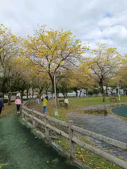 Every March, the golden trumpet trees at Buzih Park bloom as scheduled, transforming the entire park into a sea of golden flowers, as if stepping into a fairytale world. Sunlight filters through the blossoms, casting a warm glow on children playing and visitors engrossed in capturing the beauty with their cameras, creating a scene filled with the warmth and vitality of spring. Strolling along the pathways, the stunning interplay of golden flowers, blue skies, and lush greenery offers a breathtaking view that soothes the soul. Beyond flower viewing, the park's well-designed recreational facilities and walking trails make it an ideal spot for family outings and leisurely strolls. This seasonal floral feast is a must-visit hidden gem for springtime outings in Taichung.