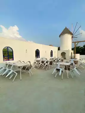 Dreaming of Greece but short on time? Let De’ Sands of Santorini Batam transport you there—no passport needed! Tucked away in Batam around Bengkong area, this place gives off total Santorini vibes with its iconic white and blue architecture, and relaxed island charm.