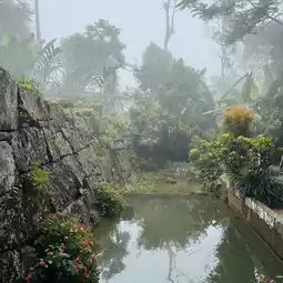 At the entrance to the Japanese Garden, there’s a simple but beautiful bamboo gate. Walking through it instantly made me feel like I had entered a hidden, ancient world. The path led to more surprises: mossy stones, tiny bridges, trickling streams, and colorful plants peeking out of the mist.