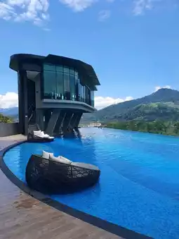 Facilities include a spacious infinity pool and a rooftop gym. Right next to the residence is a cozy forest café, where enjoying breakfast with a view was simply delightful.