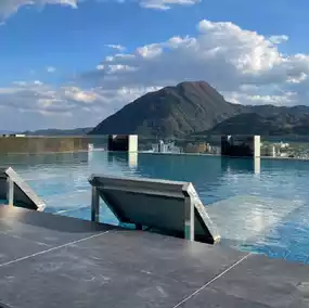 The top floor is equipped with a large bath with sauna and an open-air bath, and the infinity pool on the roof was wonderful!