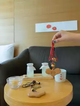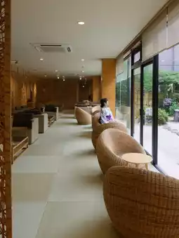 You'll be greeted by a cute camellia mark at the entrance, and after taking off your shoes, you can relax on the bamboo flooring.
