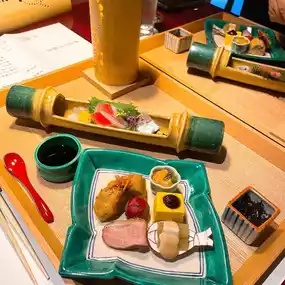 For dinner, we have a gorgeous Horakumori platter in a bamboo craft,