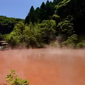 The famous "hell" landscape in Beppu is actually a hot spring spring formed by a group of volcanic fumaroles.