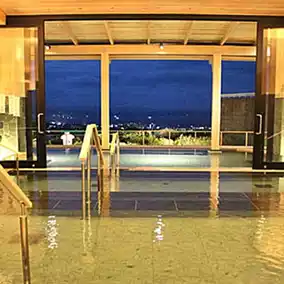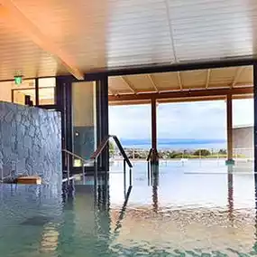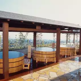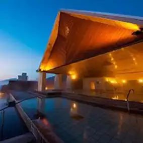"Water Garden Sora Yu": Its feature is the spacious spa center with a view. The large hot tub overlooks the picturesque Beppu Bay. Through the carefully created architectural visual effects, the bathing pool seems to be integrated with the sky and the sea, and you can enjoy the scenery from every angle. You can swim in the pool or enter the hot spring pool where you can use a swimming ring. There is also a rest area with light folding chairs and terrace umbrellas, which is enough for you to relax and enjoy the present moment.