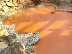 The hot springs called hells are colorful, red, blue, and white, and depending on the temperature of the water, they can end up becoming a paradise.