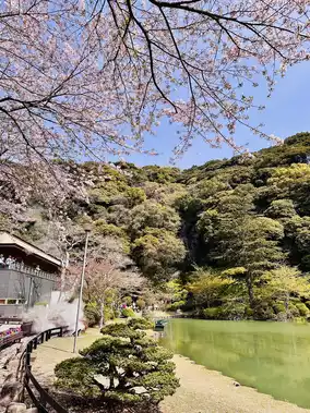 We could even see the hot spring eggs sinking! There was a pond with floating lotuses in the background, and it was a beautiful place with flowers blooming. #For couples #Amazing view