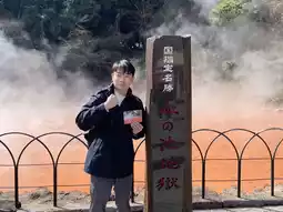 Standing in front of the Onishi Bouzu filled with sulfur steam, I feel the power and mystery of the earth, and I can't help but feel awe in my heart.