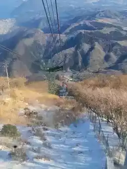 The Beppu Ropeway is a cable car route located in Beppu City, Oita Prefecture, Japan. It is the largest cable car in Kyushu, accommodating up to 101 passengers. The ride takes only 10 minutes to reach the summit of Mount Tsurumi, which stands at an elevation of 1,375 meters above sea level. From the top, visitors can enjoy a panoramic view of Beppu City. There is also a shrine at the summit, the Tsurumi Sanjo Gongen Shrine, where visitors can pay their respects. The shrine features statues of deities representing wisdom, power, and fortune.