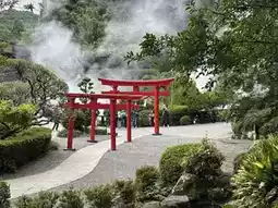 The most iconic of Beppu's Hell Hot Springs is the breathtaking Sea Hell. With its ocean-blue waters and billowing white steam, it feels like stepping into a fantastical scene. The red torii gate standing amidst the steam adds an extra layer of mystique.
