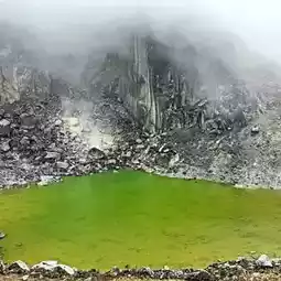 Once on the ridge of the crater you will be able to see the sulphur streams shooting out of the hillside and can walk down onto the floor which is covered in water. It is a shame that previous visitors have thought it appropriate to 'write' their names using rocks on the floor. It makes getting a natural photo difficult.