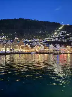 Soft lights, cool air, and beautiful reflections. Bergen is just as magical at night.