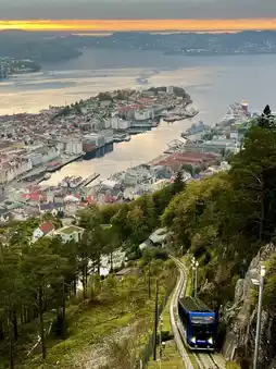 🚠 Took the Fløibanen up to Mount Fløyen. It wasn’t the height that struck me, it was the silence at the top. Kids ran through the forest trails, a dog barked once and disappeared down the path. The city spread below, caught between green hills and blue water💦