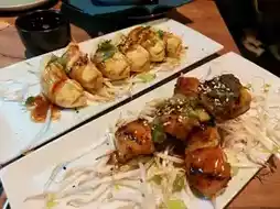 ➡️ Chicken Gyoza - Served with a thick, sweet and salty sauce, the same as yakitori sauce. There is no proper gyoza dipping sauce.