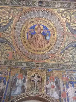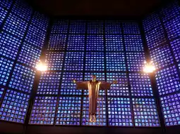 Surrounded by bright blue stained glass, it is truly beautiful.