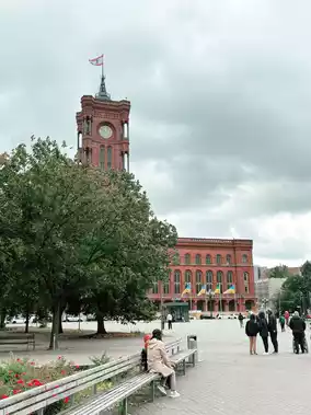 Right across from the fountain is the Rotes Rathaus (Red City Hall), a striking red brick building in Neo-Renaissance style. Inside, there are often exhibitions or events depending on the time of year.