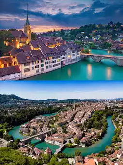 🇨🇭 Bern, the capital of Switzerland, is full of old-world European charm. 🕰️ Located along the azure Aare River, the city's old architecture is so well preserved that it's a UNESCO World Heritage Site.