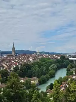 Kickstart your day at Rosengarten (Rose Garden), where you’re blessed with epic panoramic views of the turquoise Aare River wrapping all the way around Bern. The color? Next-level blue-green! From up here, you can spot modern buildings, ancient medieval rooftops, and loads of lush green trees lining both riverbanks—it’s totally IG-worthy. ☀️🌳