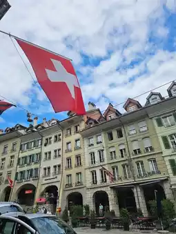 Strolling through Bern’s Old Town (Kramgasse 40, 3011 Bern, Switzerland – open ALL DAY, every day!), you’ll feel like you time-traveled. The sandstone buildings and narrow cobblestone lanes are pure medieval magic. Everywhere you look? The bold red Swiss flag waving—making every corner an absolute photospot. 🇨🇭📸