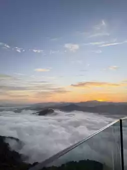 • The sea of mist here is thick and appears to float above the mountaintops, adding to the spectacular 360° views. The atmosphere is truly breathtakingly beautiful.
