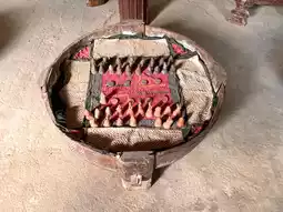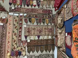 The main building was decorated with many old handmade fabrics, which were quite impressive.