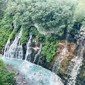There is a waterfall that doesn't freeze even in the very, very cold winter of Hokkaido! It's Biei's 'White Beard Falls'🧊They say that the water flowing down from the waterfall is hot spring water, so you can see the water flowing all year round ◡̈
