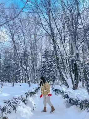 The birch forest is not that big, so you can see it all in 10-20 minutes, but it is really memorable to go down the side road and step on the snow. And especially, I went up the hill and came down the path like a slide, which was really fun😆