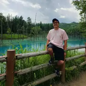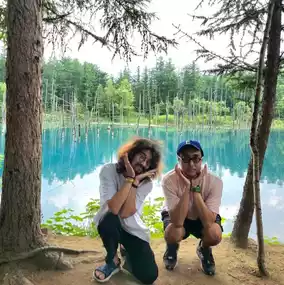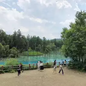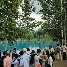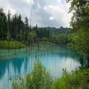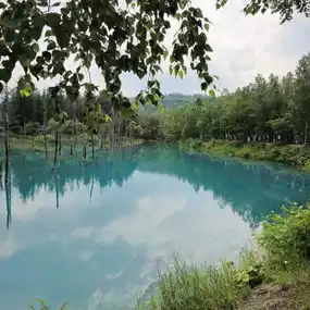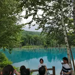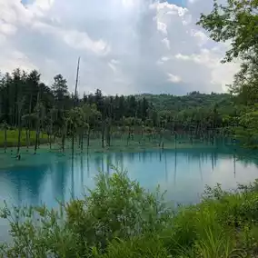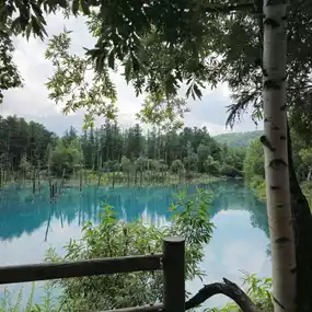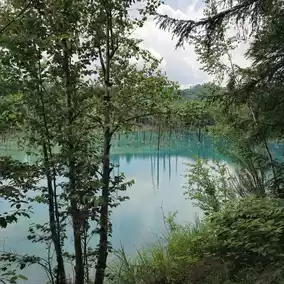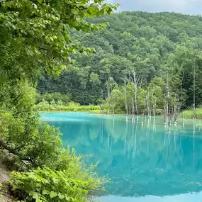 Japan Travel: Hokkaido Biei ⭐️Blue Pond⭐️ (Aoiike) is a very small artificial lake. It takes less than 5 minutes to walk around the lake, but the color of the water is so beautiful that it is a must-visit spot for travelers to Hokkaido, whether by rental car or bus tour. Although there isn't much to do other than take photos of the lake, it is still a place worth visiting.