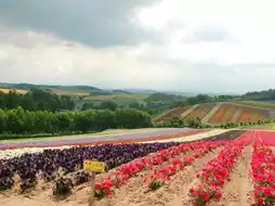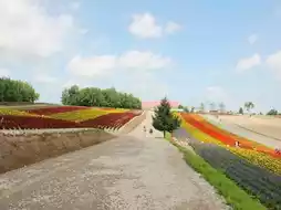 Shikisai-no-Oka is a large flower garden in the middle of a field of high and low hills at the foot of Mt. Tokachidake. The best flower viewing season here is from July to September. This is when you can see a panoramic view of the flower fields as far as your eyes can see. Each plot has different types of flowers, and the colors are all beautiful.
