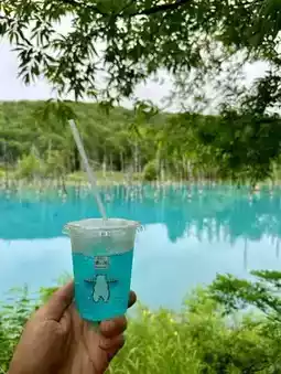 The famous scenic spot "Shirogane Blue Pond" in Biei Town, Hokkaido, is a natural wonder formed by the mineral precipitation of the nearby Tokachi-dake volcano and is included in the Hokkaido Nature Reserve. The Shirogane Blue Pond is an artificial lake, which was created to prevent the disaster of volcanic mudflow caused by the accumulation of materials after the eruption of Tokachi-dake. The water surface is famous for its mysterious blue and dead branches, which is full of artistic conception. The water surface changes to different blues in the four seasons, and you can enjoy different blue changes; in early spring when the snow melts, it is blue; in early summer, it is clear sky blue. The contrast between the new green and the azure blue, the autumn red is reflected on the water surface, and it freezes into a silvery white in the cold winter. The four seasons change, taking you to appreciate the different styles of the Blue Pond, and it is also beautiful to visit at night. Finally, the most popular thing to eat is the Blue Pond ice cream, "Blue Pond Soda" and other famous products of the Blue Pond.