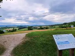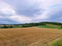 While the patchwork here may lack flower fields, the golden hues, green grass, and distant mountains still weave together a picturesque landscape.
