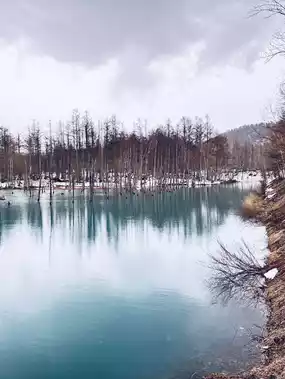 Aoike Pond in Biei Town, Hokkaido, is a famous spot known for its dreamy water color. The pond water displays a unique blue hue, a natural phenomenon caused by the aluminum-containing stream water from the Shirogane Onsen mixing with the waters of the Biei River and reflecting sunlight. Dead trees stand upright in the water, creating a mysterious and tranquil scene intertwined with the picturesque blue surface. Each season offers a different charm: clear blue in summer, maple red reflections in autumn, and snow-covered poetic scenery in winter. Aoike gained worldwide fame as the wallpaper photo for Apple’s macOS, attracting photographers and travelers from around the globe. There are trails around the area where you can enjoy views from different angles along the shore. It is recommended to visit when the sun is shining brightly for more vivid colors. Aoike Pond is one of Biei’s must-see dreamy natural landscapes.