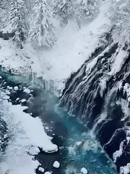 • In autumn, the vibrant colors of the leaves against the white water create a striking contrast, creating a dynamic painting.