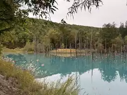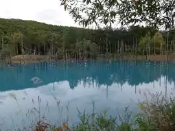 I visited the "Blue Pond" in Biei Town. Under the summer sun, the water's surface shone with a mysterious blue hue, creating a stunning contrast with the withered trees. The scenery was so picturesque that it felt like stepping into a painting, leaving me breathless. I learned that the pond's color changes depending on the weather and lighting, which made me marvel at the wonders of nature. Although there were many tourists, simply gazing at the pond brought a sense of tranquility. I believe this is one of the most iconic scenic spots in Biei.