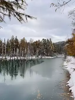 The crunch of footsteps on the snow echoed softly, and even breaths seemed to dissolve into the serene silence. Seeing that color in person, after only knowing it through photos, felt strangely unreal. Despite the chill biting at my fingertips, I couldn't help but keep gazing at it.