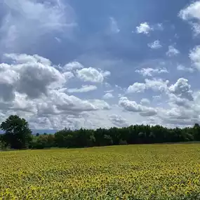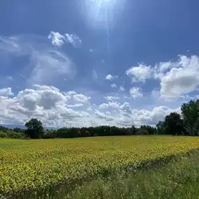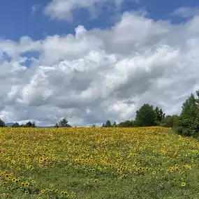 Enjoy the patchwork view through the sunflowers.