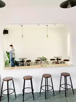 Decor: simple style with white tone. Spacious, airy space with outdoor areas and in the air-conditioned room.