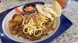 After landing at Changi Airport in Singapore, it takes less than 10 minutes by taxi to get to the pier. The hotel consists of over 100 tent rooms, and the bathrooms are semi-open with green plants, giving off a very Southeast Asian vibe. Most importantly, this resort hotel sits on the largest artificial lake in Asia, offering a wide range of outdoor activities and a place to sunbathe and relax. It is highly recommended for small partners who are tired from working in Singapore to come here and lie down. Finally, the hotel's dining is good, and the Indonesian fried noodles are highly recommended.